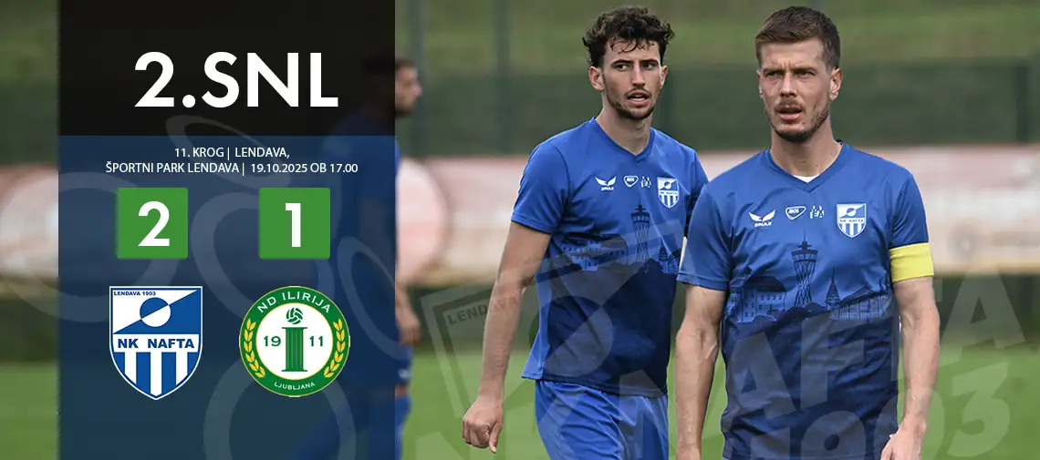 Nogometaši Nafta 1903 so v 11. krogu 2. SNL zabeležili pomembno zmago, saj so na domačem stadionu v Lendavi premagali ljubljansko Ilirijo 1911 z 2 : 1. Zadetka za lendavsko ekipo sta dosegla Noel Keresztes v 15. minuti in Aleks Pihler v 21. minuti, za goste pa je v 55. minuti zadel Anej Kmetič. Tekmo je spremljalo približno 550 gledalcev, ki so po koncu srečanja lahko zaploskali novi vodilni ekipi prvenstva.
