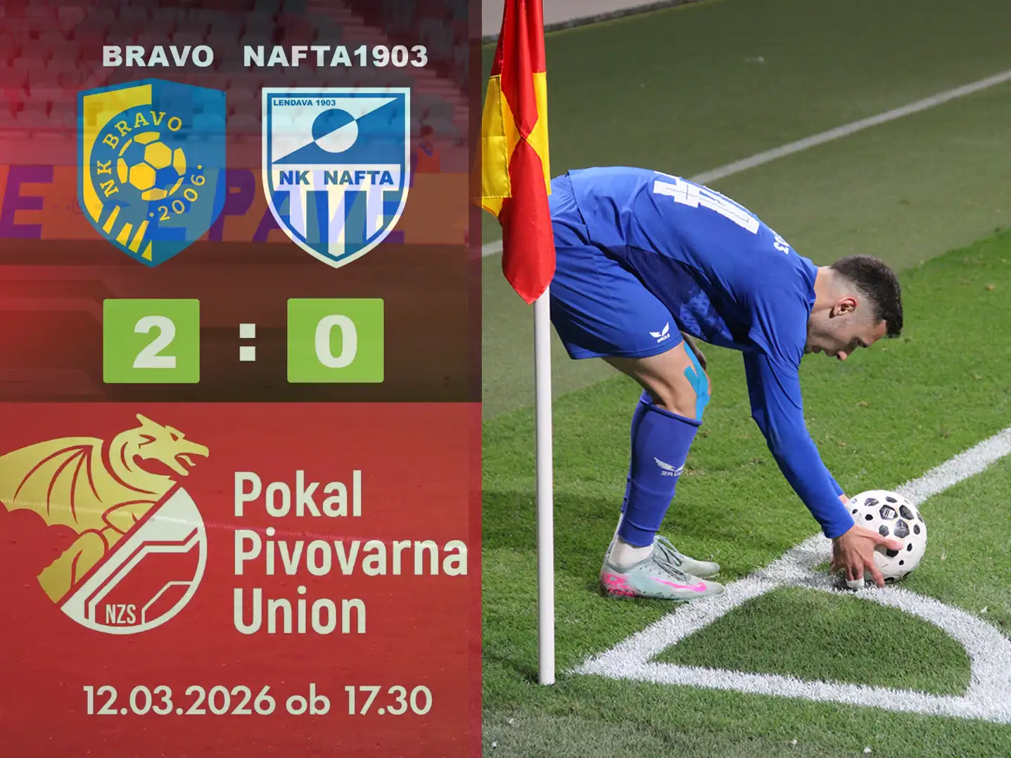 Že v 4. minuti je Becze zanesljivo realiziral enajstmetrovko in domače popeljal v vodstvo. Gostje so prek Maja Krivca hitro izenačili, a Becze je v 35. minuti znova zadel in postavil končni rezultat 2 : 1.